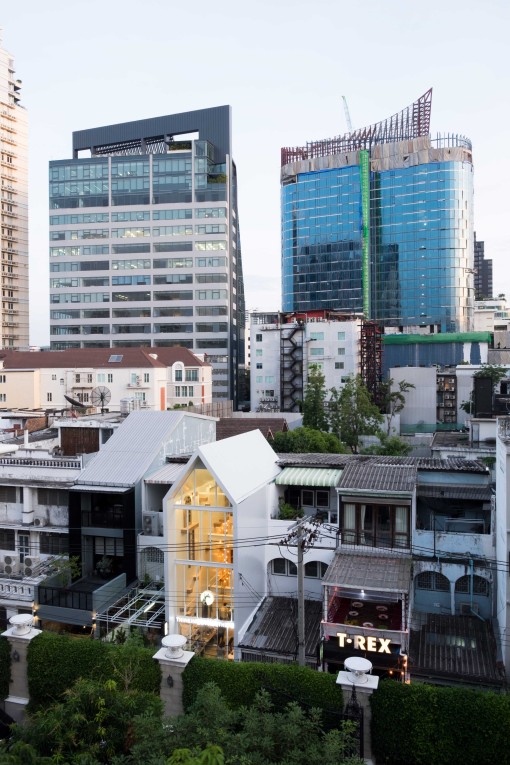 TREE คือไอเดียของการทำ Form ของตึกใหม่นี้ รูปทรงของต้นสนที่เป็นยอด 3 เหลี่ยมแหลม เราอยากให้ Form นี้เกิดขึ้นที่ร้านแห่งนี้ เหมือนเป็นต้นไม้สูงแห่งเดียวในย่านทองหล่อ
