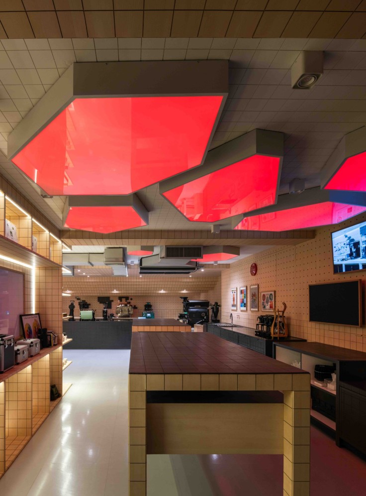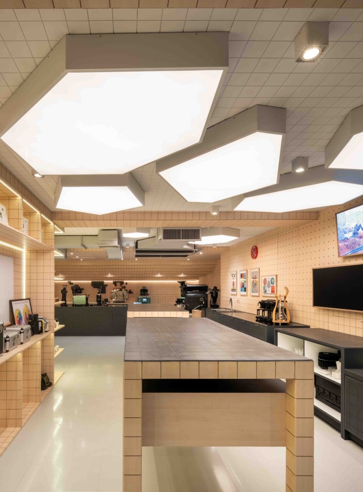 The core design concept is THE GRID — inspired by the systematic world of coffee professionals, where every process, from roasting to cupping to brewing, follows structured methods, data tables, and precise measurements. This grid system was adopted as the design language, expressed through organized spatial planning, clean linear forms, and materials that reflect professionalism, warmth, and a sense of community. The result is a learning space that truly embodies the spirit of an "Academy for Coffee People."