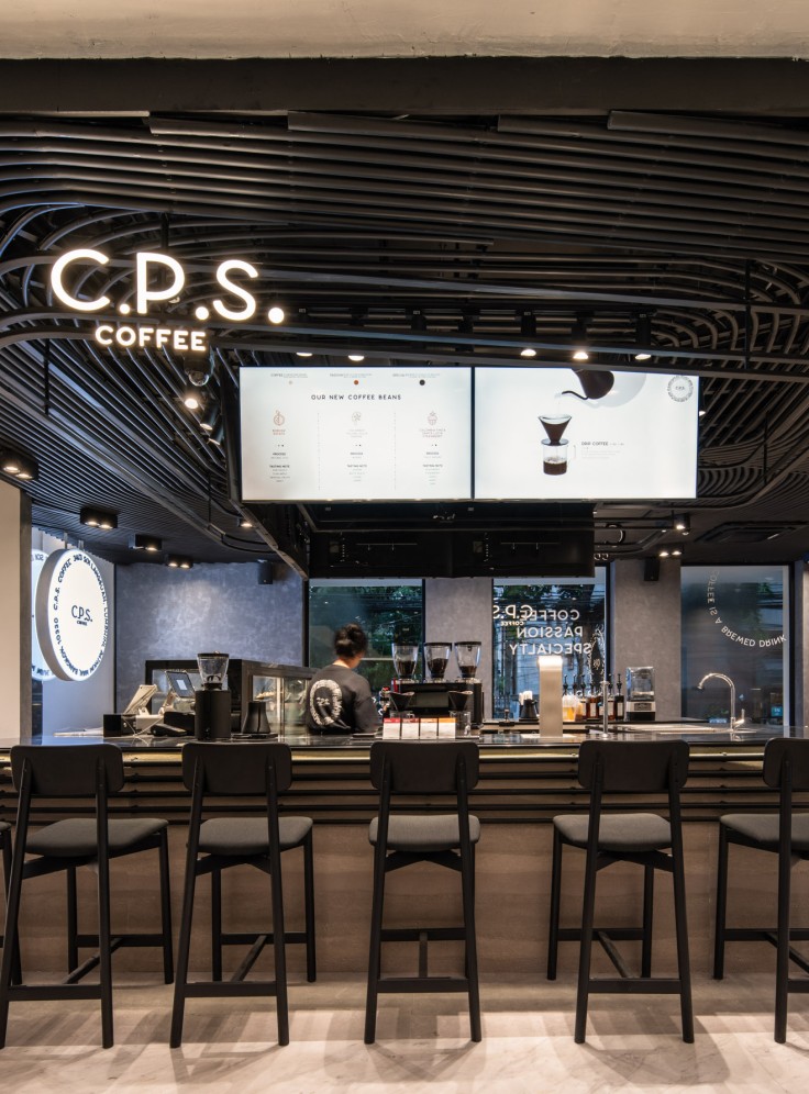 The store design for this branch is located under the Office Building [Vivre] on Lang Suan Road, so it is a shop that emphasizes Everyday. You can stop by and drink coffee every day. Throughout every moment, morning, afternoon, and evening, before returning home. . Brand CPS COFFEE has the main iDea which is DOT DOT DOT [Light Medium Black]. This branch has an O-shaped bar in the middle of the area. To make it look as part of the building as possible And the new element of CPS COFFEE is the ceiling that is oval like a water drop. It is like the ripples of water caused by this bar, called . Droplet . It still looks beautiful but doesn't shout out to those who can see the details. This comes from sitting back until you can see the circular ceiling that spreads out to fill the whole area of the shop . การออกแบบร้านสำหรับสาขานี้เป็นสาขาที่อยู่ใต้ Office Building [Vivre] บนถนนหลังสวนจึงมีความเป็นร้านที่เน้นความเป็น Everyday แวะมากินกาแฟได้ทุกวัน ตลอดทุกช่วงเวลา เช้า บ่าย เย็น ก่อนกลับบ้าน . Brand CPS COFFEE มี iDea หลักคือ DOT DOT DOT [Light Medium Black] โดยสาขานี้ทำบาร์เป็นทรงตั้ว O อยู่กลางพื้นที่ เพื่อให้ดูเป็นส่วนหนึ่งของตัวอาคารมากที่สุด และส่วนที่เป็น Element ใหม่ของ CPS COFFEE นี้คือ ฝ้าที่เป็นลักษณะวงรีคล้ายหยดน้ำ เป็นเหมือนระยะกระเพื่อมของน้ำที่เกิดจากบาร์นี้ เรียกว่า . Droplet . ที่ยังคงดูสวยแต่ไม่ตะโกนให้คนที่มองเห็นรายละเอียดต่างๆนี้เกิดจากการได้นั่งเอนหลังจนมองเห็นฝ้าที่เป็นวงแผ่ขยายออกไปจนเต็มพื้นที่ของตัวร้าน .