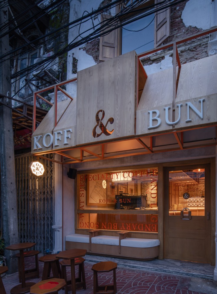 Renovation work on a half-storey shophouse in the Songwat Road area. In the concept of going back in time to 1906 . The PSD team still wants to maintain the original vibe of the old building. Keep the original pillars and add on the missing parts by scanning the original pillar frames and 3D printing the wall work. Peeling off the old cement surface to show the original walls inside. Decorative plaster and seal some leaks. Ready to make wall texture . #Tai Pae Shop, a legendary Yaowarat steamed bun shop for 86 years (since 1938) Why is there this sign on the 2nd floor of KOFF & BUN? Because the steamed bun shop was a family business before it became a coffee shop. Making the seating area on the 2nd floor look nostalgic can be interpreted in many ways. It is not just to make it look old in 1906, but it could also be a reminder of the origin of this coffee shop, which used to be a famous steamed bun shop in Yaowarat. . #1906 The origin of Song Wat Road According to history, King Rama V solved the problem of fires in Yaowarat because in the past, when this community had a fire, fire trucks could not reach the community. As a result, King Rama V had to draw a map to determine the location of the road that would cut through the community so that fire trucks could enter. The name of this road has been "Song Wat Road" since then. . #Coffee Shop Chairs The PSD team designed both new chairs and tables for this room specifically because these days, we can't find chairs and tables that look shabby. Suitable for bringing together at a table ready to continue to connect like the past that we saw in old coffee shops. It is very difficult. The team has developed it further from the shape inspired by making dumplings and buns, which are usually not very round, have unpredictable corners, and most importantly, no two pieces are 100% the same. งานรีโนเวทตึกหนึ่งห้องแถวครึ่งย่านถนนทรงวาด ในconceptย้อนเวลากลับไป พ.ศ.2449 . ทางทีมPSD ยังคงต้องการคงความเป็นกลิ่นอายเดิมของตัวอาคารเก่า เก็บเสาเดิมพร้อมต่อเติมส่วนที่หายไปด้วยการสแกนโครงเสาเดิมพร้อมขึ้น3D printing งานผนัง ลอกผิวหน้าปูนเก่าออกเพื่อโชว์ผนังเดิมด้านใน ฉาบปูนตกแต่งและอุดรอยรั่วบางส่วน พร้อมทำtextureผนัง . #ร้านไต้แป๊ะ ร้านซาลาเปา เยาวราชตำนาน 86 ปี (ตั้งแต่ 1938) ทำไมต้องมีป้ายนี้บริเวณชั้น2 ของร้าน KOFF & BUN เนื่องจากร้านซาลาเปาเป็นกิจการที่บ้านก่อนที่จะมาทำเป็นร้านกาแฟ การทำที่นั่งชั้น 2 ให้ดูหวนถึงอดีตอาจตีความหมายได้หลายทาง ไม่ใช่แค่ให้ดูเก่าไปเมื่อปี 2449 แต่อาจจะเป็นการรำลึกถึงจุดกำเนิดกิจการร้านกาแฟแห่งนี้ ที่เคยเป็นร้านซาลาเปาเจ้าดังของเยาวราชมาก่อนได้อีกนัยยะ . #2449 จุดกำเนิดถนนทรงวาด ตามประวัติที่ สมเด็จ ร.5 ได้ทรงแก้ปัญหาเรื่องไฟไหม้บริเวณเยาวราชเพราะสมัยก่อนเวลาชุมชนแห่งนี้มีเหตุเพลิงไหม้ ไม่สามารถนำรถดับเพลิงเข้ามาถึงชุมชนบริเวณนี้ได้เลย เป็นเหตุให้ สมเด็จ ร.5 ต้องทรงวาดกำหนดลงไปในแผนที่ เพื่อกำหนดตำแหน่งถนนที่จะตัดผ่านชุมชนแห่งนี้ เพื่อให้รถดับเพลิงเข้ามาได้ ชื่อถนนนี้เลยเป็น “ถนนทรงวาด” ตั้งแต่นั้นเป็นต้นมา . #เก้าอี้สภากาแฟ ทางทีม PSD ได้ออกแบบทั้งเก้าอี้และโต๊ะขึ้นมาใหม่สำหรับห้องนี้โดยเฉพาะ เพราะยุคสมัยนี้เราหาเก้าอี้และโต๊ะที่ดูเฉิ่มๆ เหมาะสำหรับยกมารวมกันที่โต๊ะที่พร้อมจะต่อกันไปเรื่อยๆเหมือนอดีตที่เราเห็นในร้านกาแฟโบราณ ยากมากๆแล้ว ทางทีมเลยพัฒนาต่อยอดมาจากรูปทรงที่ได้แรงบันดาลใจมาจากการทำขนมจีบซาลาเปา ที่มักจะมีลักษณะเป็นก้อนไม่กลมมาก มีมุมปรากฎออกมาแบบคาดเดาไม่ได้ และที่สำคัญไม่มีชิ้นไหนเหมือนกันแบบ 100 %