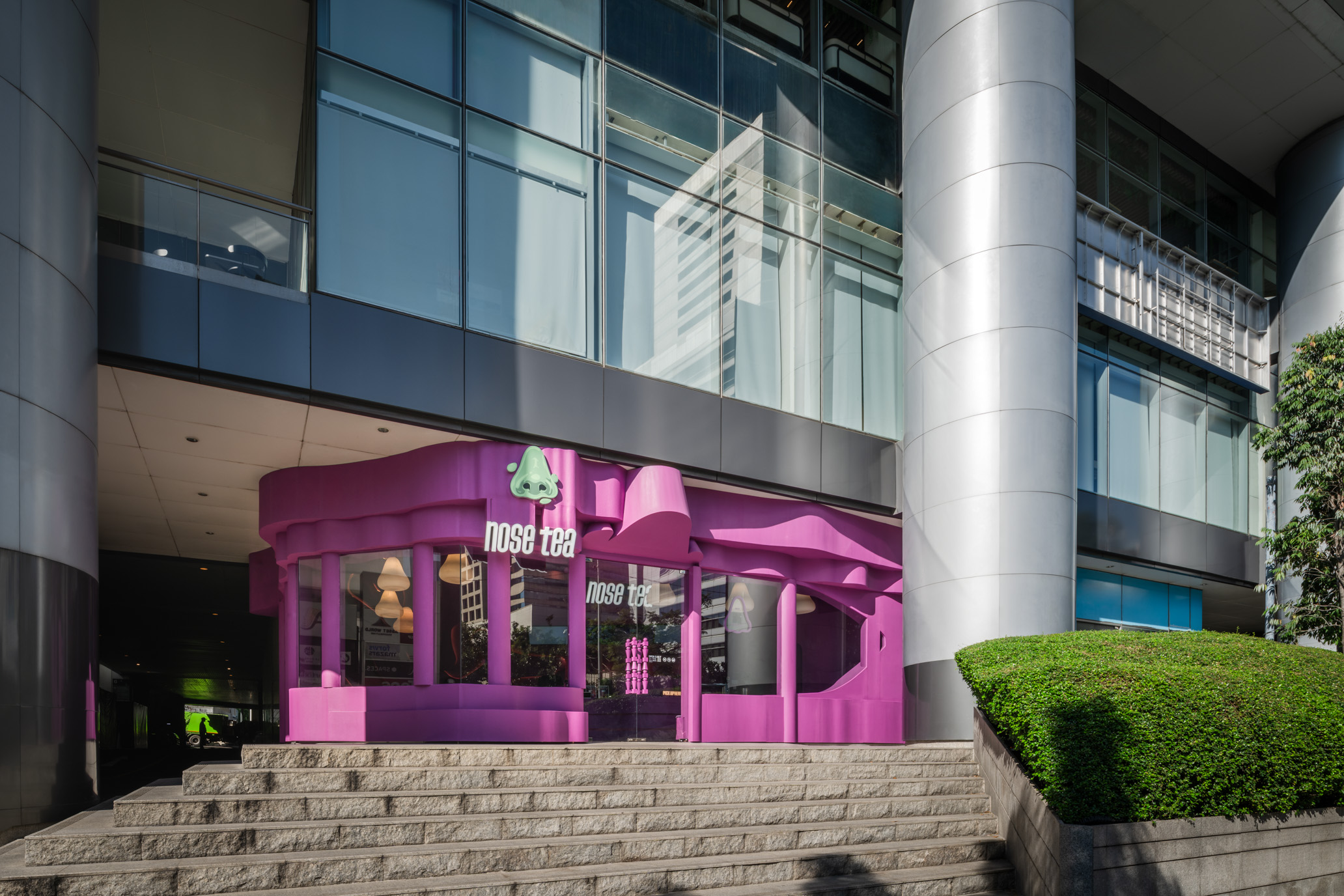 Every time Nose Tea launches a new branch, always creates excitement through a unique design in each location. Therefore, when our design team was entrusted to design this new Nose Tea branch, our goal was to elevate that same sense of excitement. The team reimagined the in-store experience through the concept of a “The maze”, not in the prosy green maze but used magenta color for more excitement. A full-scale, three-dimensional maze was created with sliced, divided, and transformed into the core design language of the space, becoming walls, ceilings, furniture, and all key elements throughout the store.
